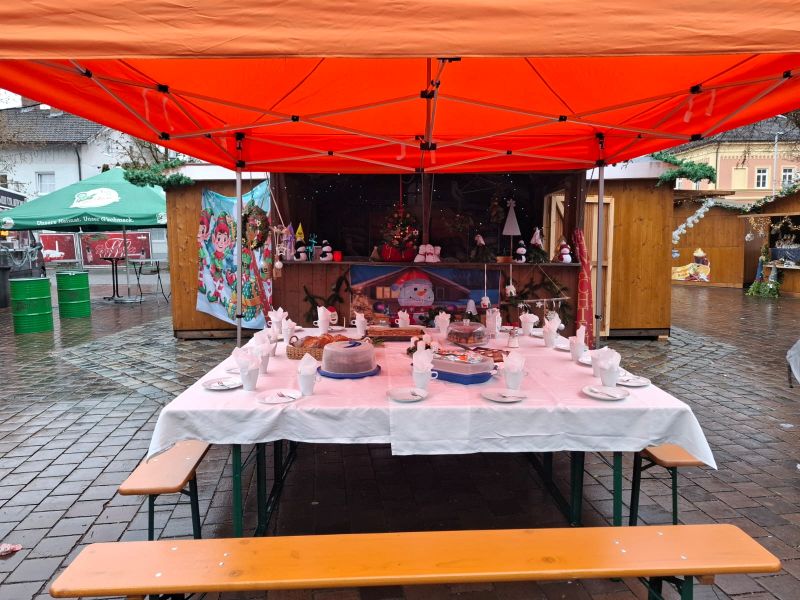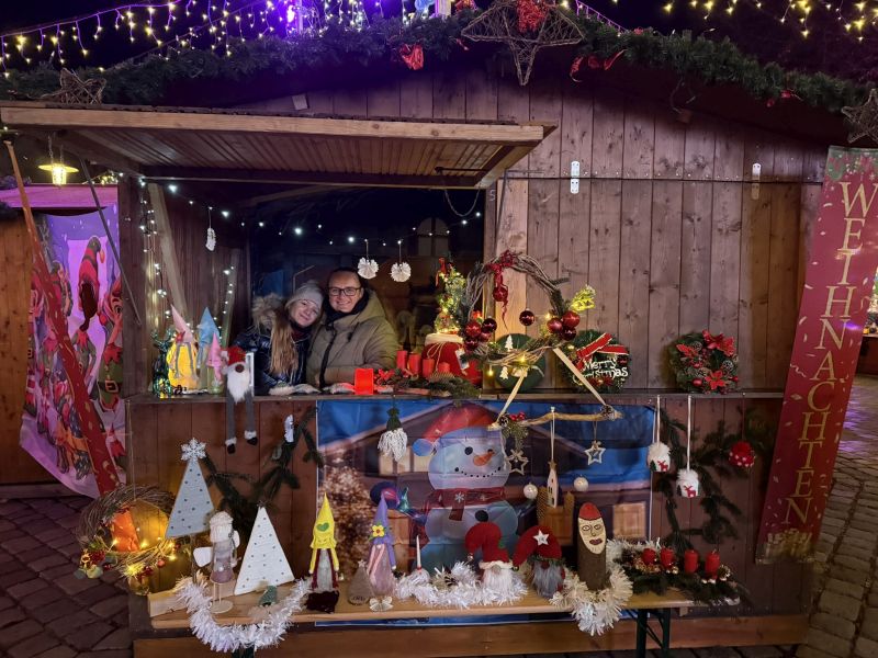 In einer weiteren Hütte gaben wir gegen Spende Bastelarbeiten unserer Kinder und deren Eltern ab – Adventskränze, Wichtel und andere Weihnachtsdekorationen waren sehr begehrt.