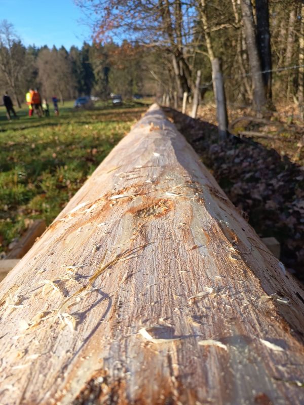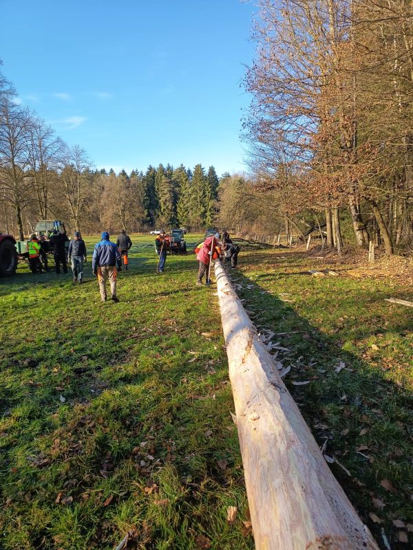 Gestiftet wurde der Baum von Michael Glas – am 20. Dezember wurde er gefällt, von zahlreichen fleißigen Helfern geschepst und an einen sicheren Lageplatz gebracht; nach einem vorangegangenen Maibaum-Diebstahl sind die Beteiligten nun sehr vorsichtig.